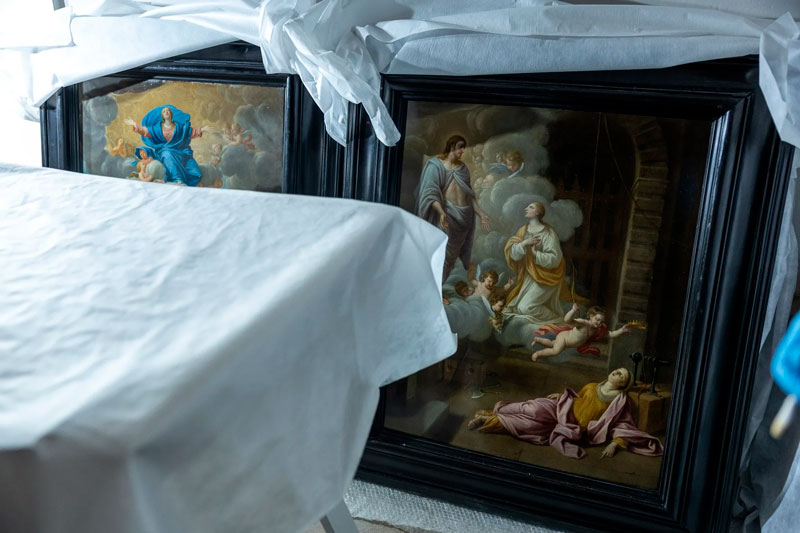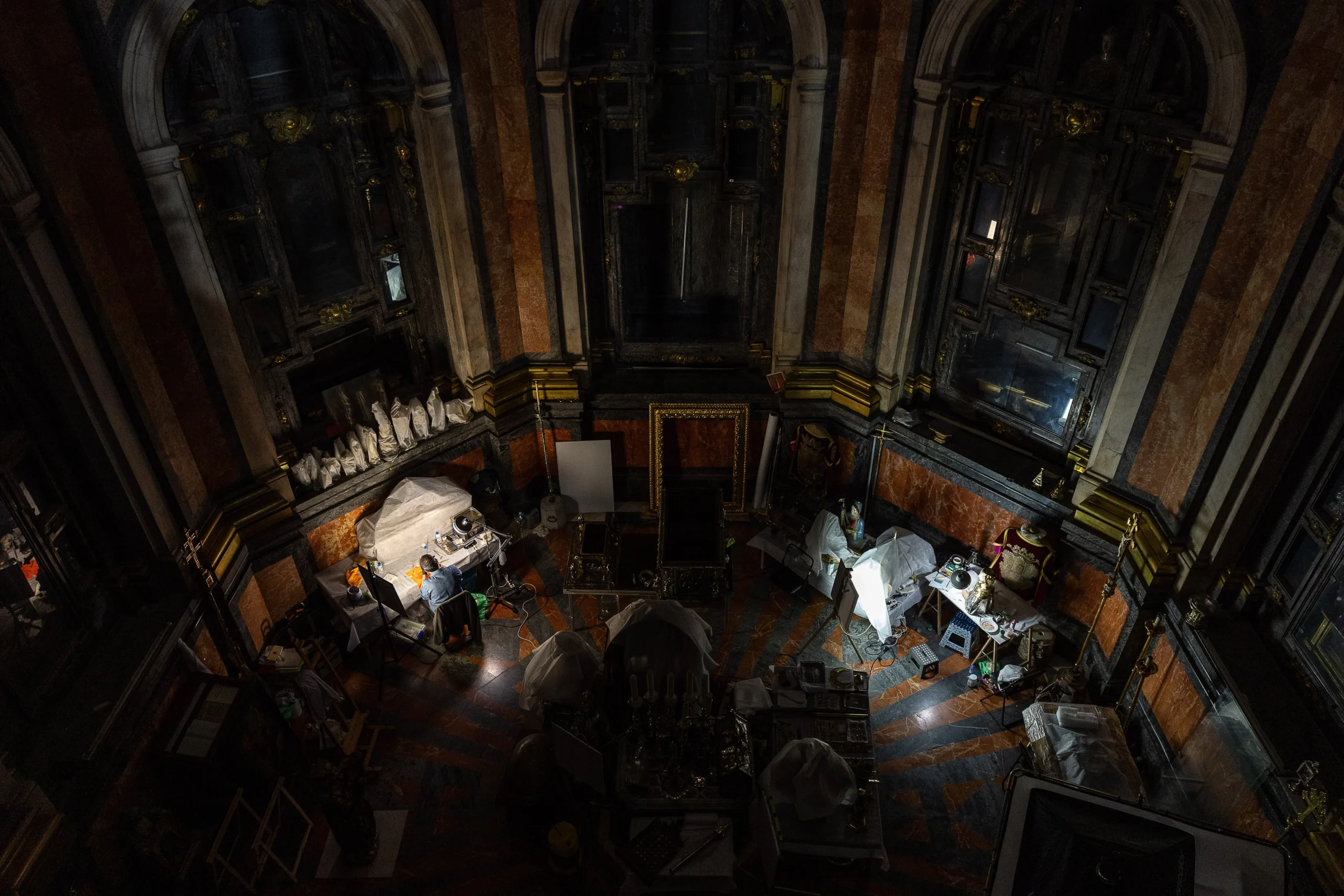 Ello también ha conllevado un trabajo de restauración de un gran número de estas piezas -que se ha llevado a cabo dentro de la propia catedral, en espacios cerrados al público como el Ochavo, donde habitualmente se conservan las reliquias del templo, la capilla dedicada a San Eugenio o el camarín de la Virgen-, y que comenzaron a finales de 2023.